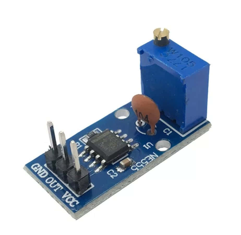 Выдаёт ШИМ сигнал амплитудой в 5 вольт, скважность можно менять подстроечным резистором (вон та синяя штуковина с вырезом под отвертку). При желании можно заменить подстроечный резистор на переменный и получим удобную ручку регулировки