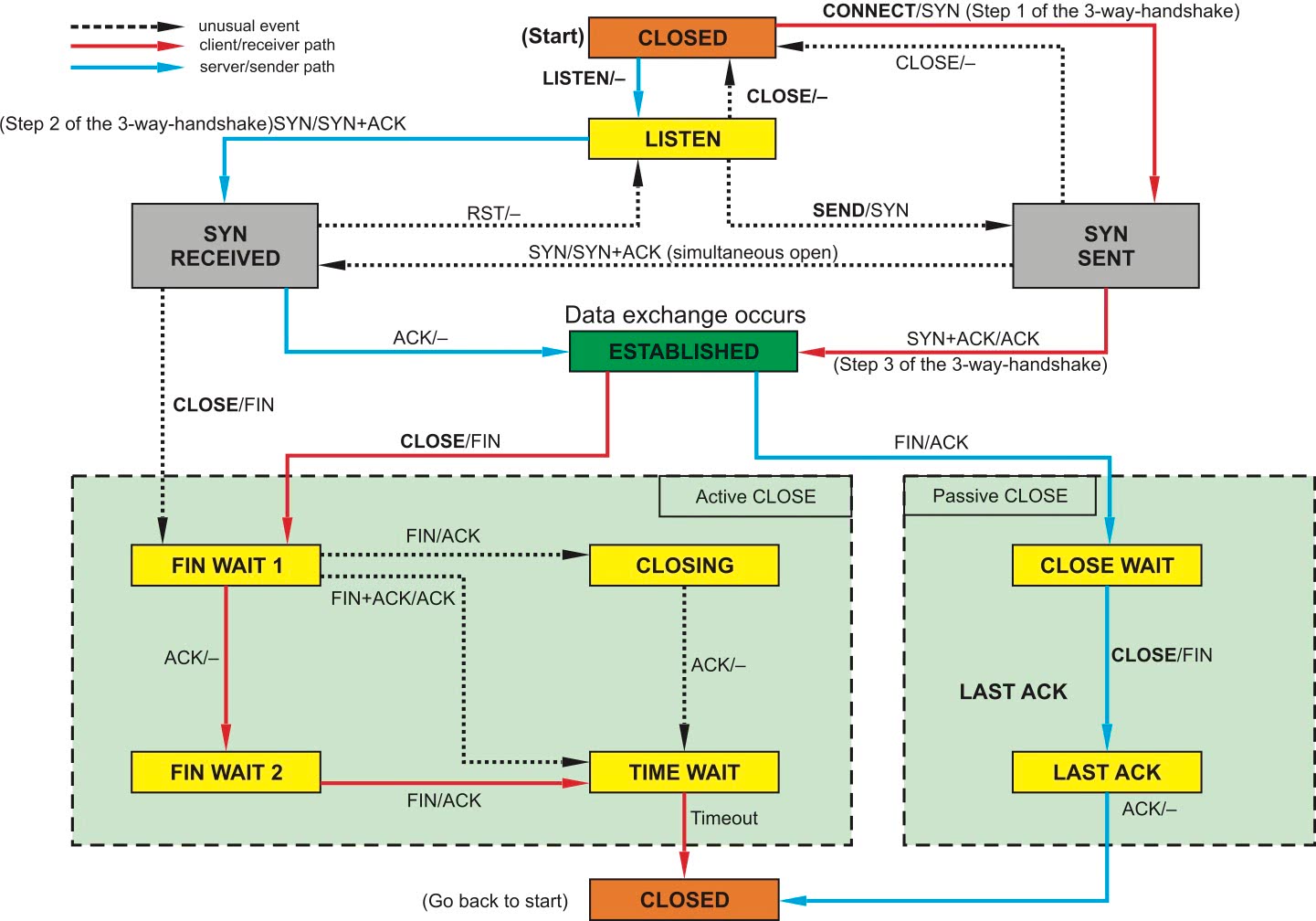 Рис. 2. Граф процессов и состояний стека протоколов TCP/IP