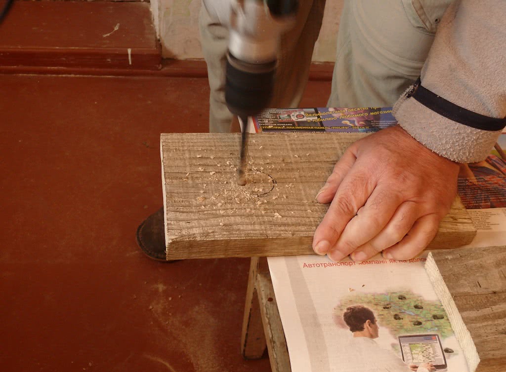 Понадобится доска шириной толщиной 2 сантиметра (или 20 миллиметров). Её можно найти в строительном магазине. Кроме того понадобятся угольник, линейка, циркуль, карандаш, ножовка, лобзик, дрель (можно заменить ножовкой) и долото (можно заменить полукруглой стамеской или ножовкой), а также гвозди.