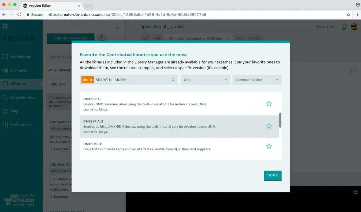 К настоящему времени сообществом Arduino написано более 700 библиотек, которые вы можете включить в ваши скетчи в Arduino Web Editor даже не устанавливая их. Вы можете посмотреть их все в менеджере библиотек (Library Manager) и отметить из них те, которые вам понравились больше всего. Из менеджера библиотек все эти библиотеки легко (автоматически) интегрируются в вашу программу без необходимости их установки.