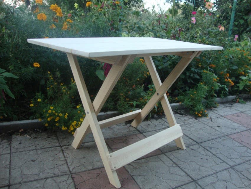 Если вы решили разобраться, как сделать складной стол своими руками, то сначала оцените свои возможности. Мастерам, не имеющим внушительного опыта, стоит отдать предпочтение простейшим моделям с крестообразными ножками.