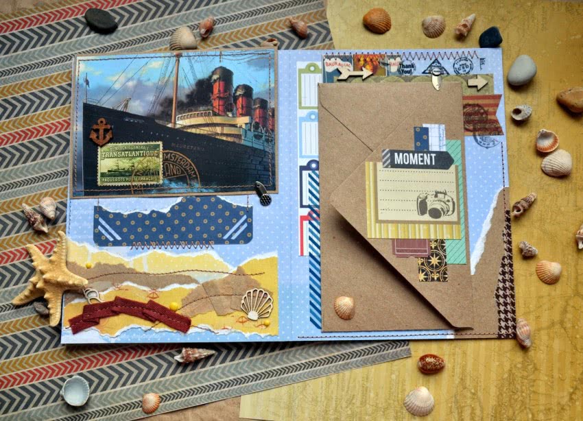 Если свадьба проходила в каком-то особенном формате, то и альбом не должен выбиваться из общего направления. Если это была морская тема, то и в альбоме бедует много голубого, появятся ракушки и полоски.
