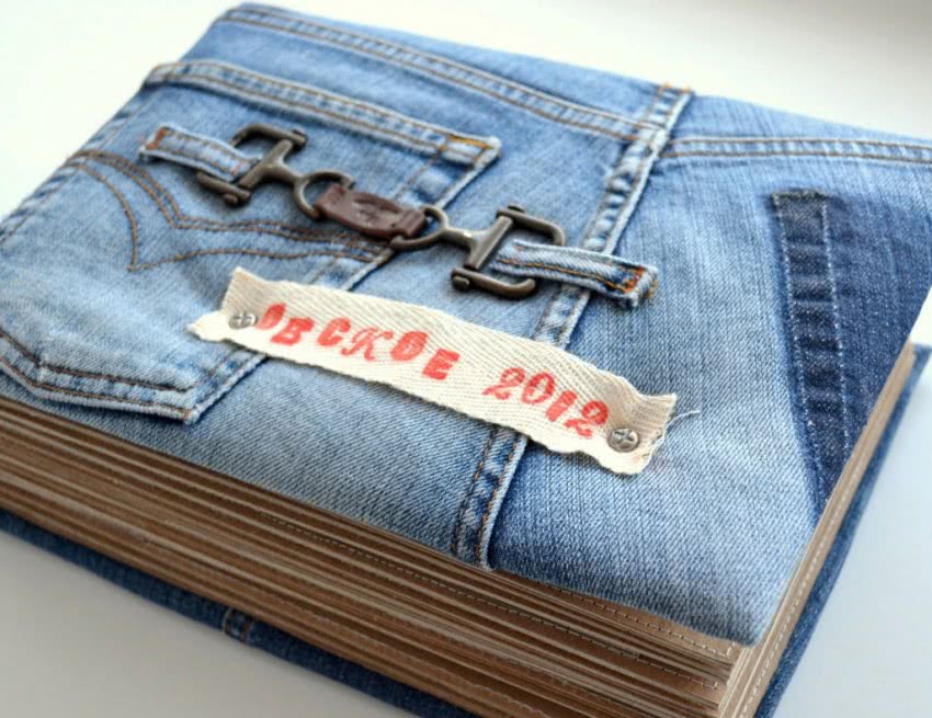 Аккуратно отрезаем переплет от старого ненужного или некрасивого альбома. Обтягиваем его выбранной тканью, закрепив с обратной стороны, украшаем. Измерив ширину корешка и прикинув, сколько листов и какого размера в него поместится, повторяем п. 1-3 из списка выше.
