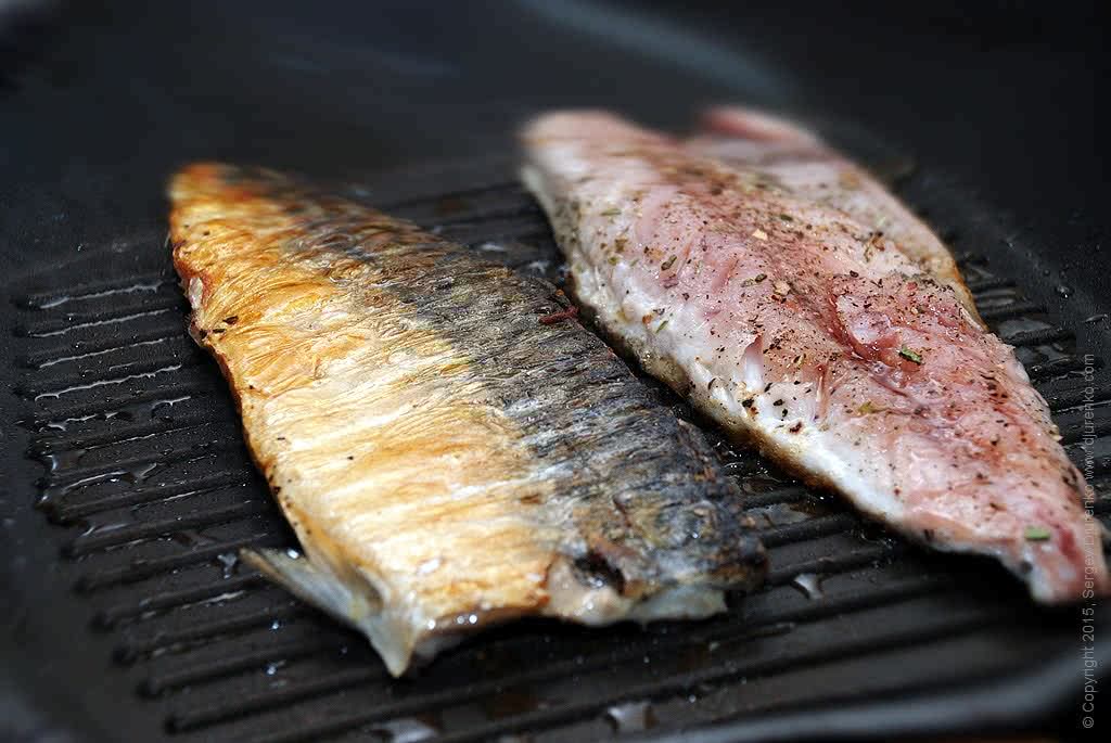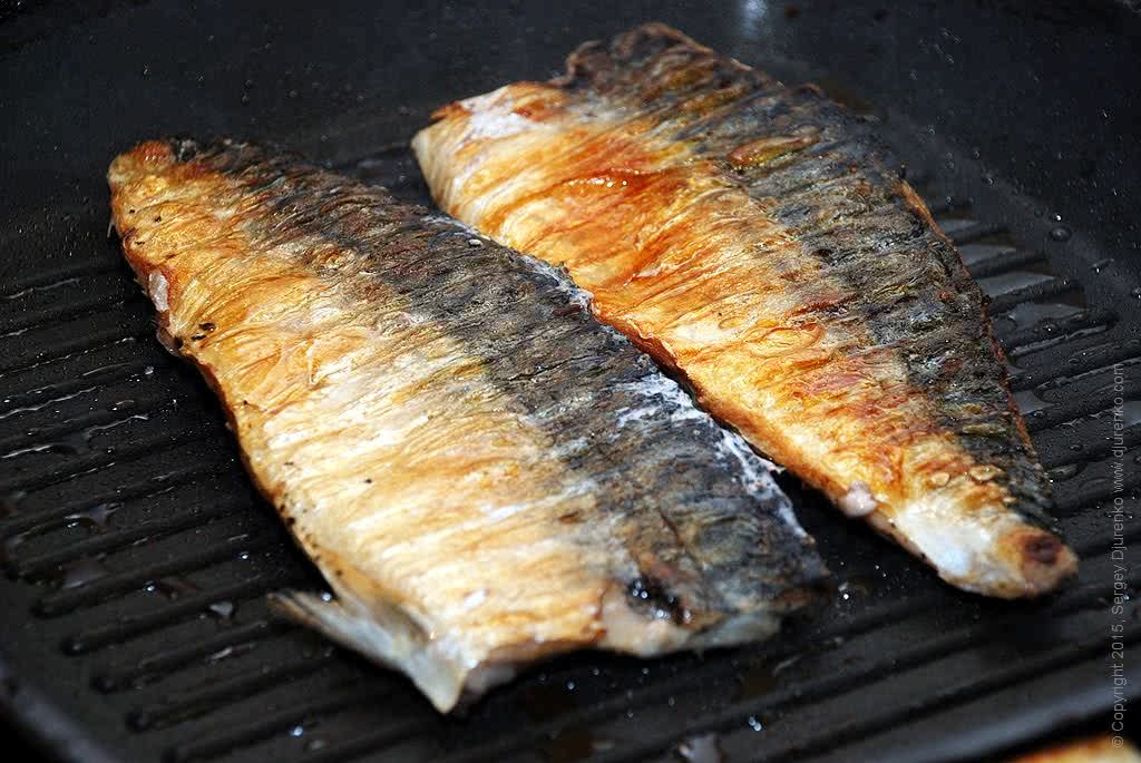 - Начать жарить лучше со стороны кожи. Дождитесь, пока скумбрия на решетке хорошо подрумянится, и переверните. Скумбрия на решетке жарится очень быстро. Запах щекочет ноздри и вызывает обильное слюновыделение.