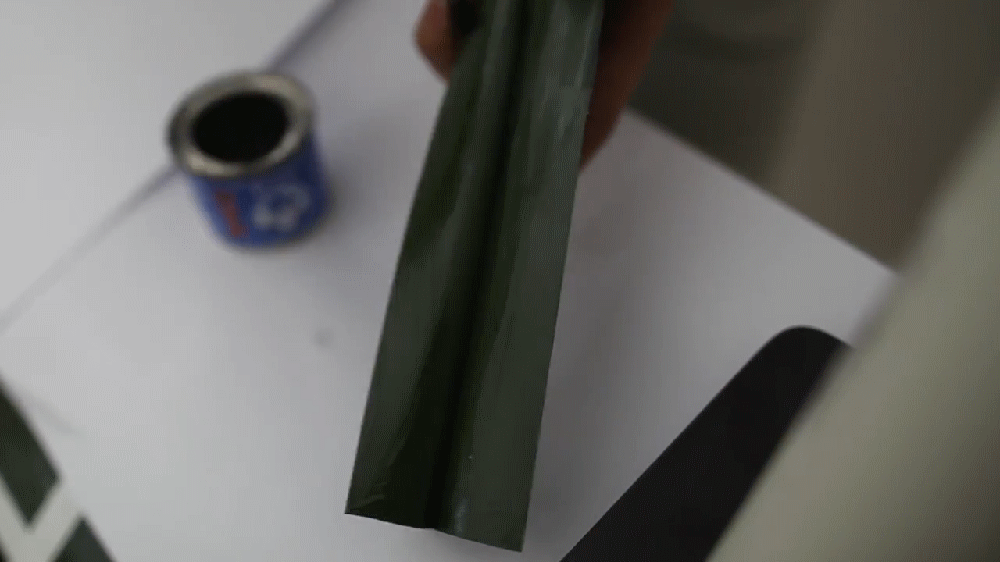Нанесение клея на рейку из ПВХ: