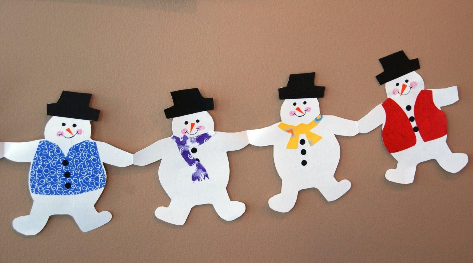 Снеговик из ниток и клея в виде аппликации – новогодняя поделка в детский сад