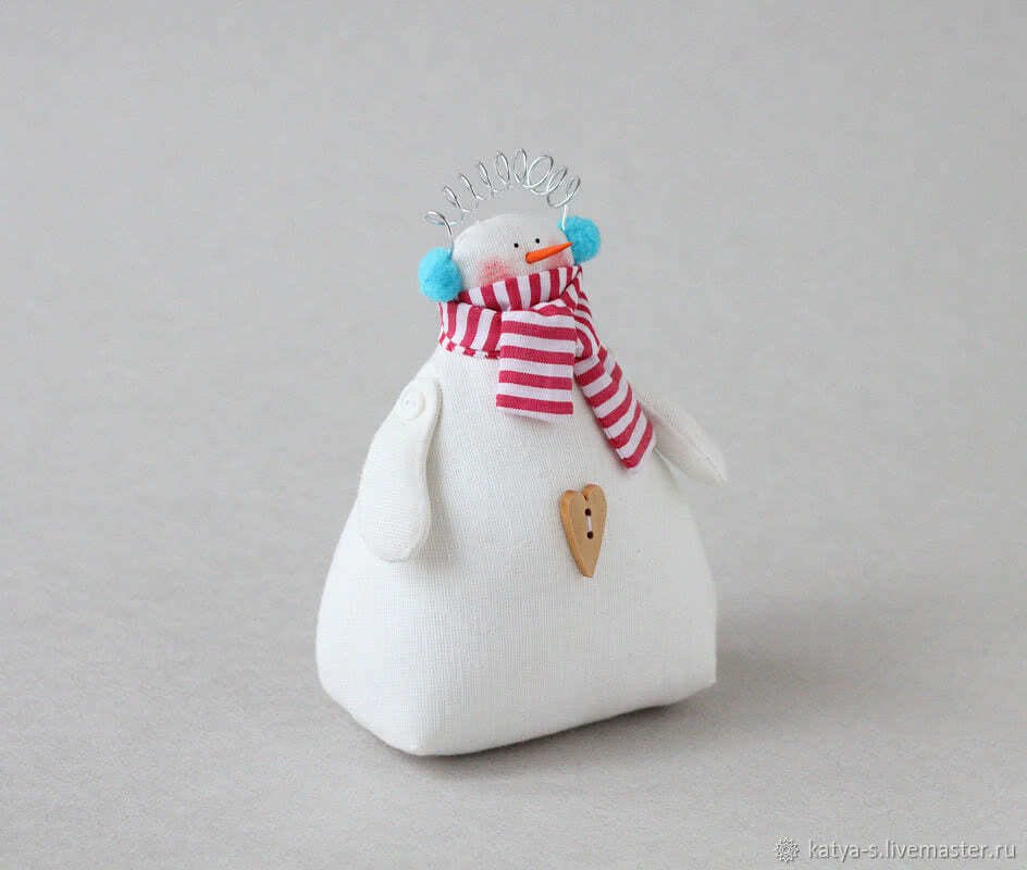 Теперь необходимо сделать нос, глазки, завязать шарфик и придумать яркий головной убор. Если нос делается из полимерной глины, то нужно сформировать морковку, после положить ее на 10 минут в кипящую воду и остудить при комнатной температуре.