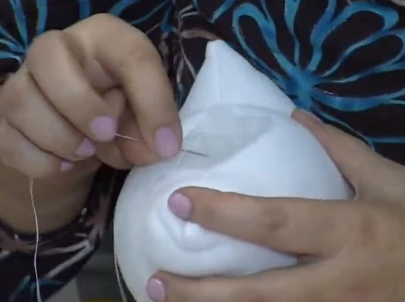 - Детали выворачиваем и набиваем наполнителем, а оставленные отверстия зашиваем.
