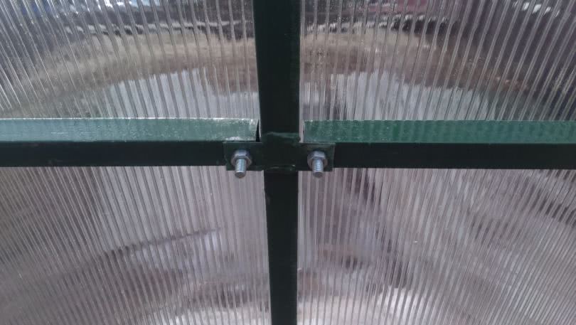 Одна профильная труба крепиться к другой методом прижима, и последующей фиксации болтами. Для более надежности конструкции соединительный крепеж нужно устанавливать изнутри. Так можно избежать внешнего воздействия, которое может привести к образованию ржавчины. А это в сою очередь может привести к разрушению установки.