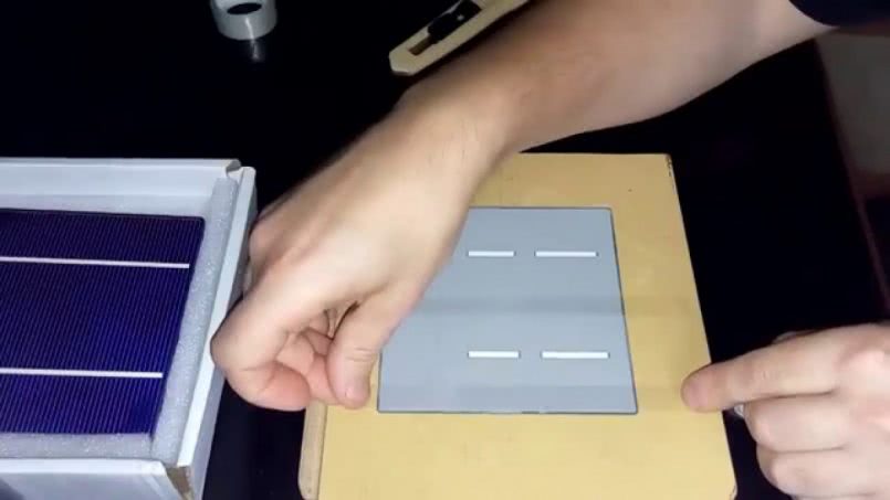 - На каждый край пластинок укладывается небольшой груз, после чего герметик полностью высыхает, а фотоэлементы надежно фиксируются.