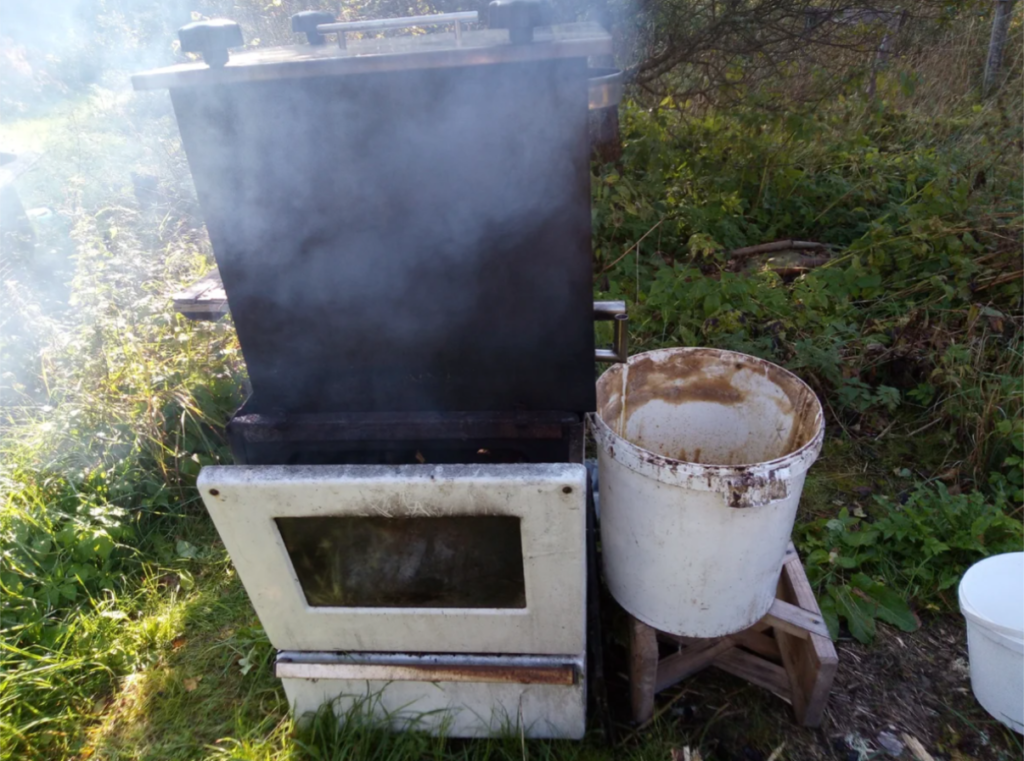 Для небольшой пасеки 6-рамочное оборудование будет оптимальным вариантом. Как это работает? В изготовленный бак подвешивают соты, разводят костер под ним, вода равномерно топит воск, который падает в воду и оседает там. Нужно постоянно следить за очагом, чтобы костер не прогорел и воск не застыл от этого.
