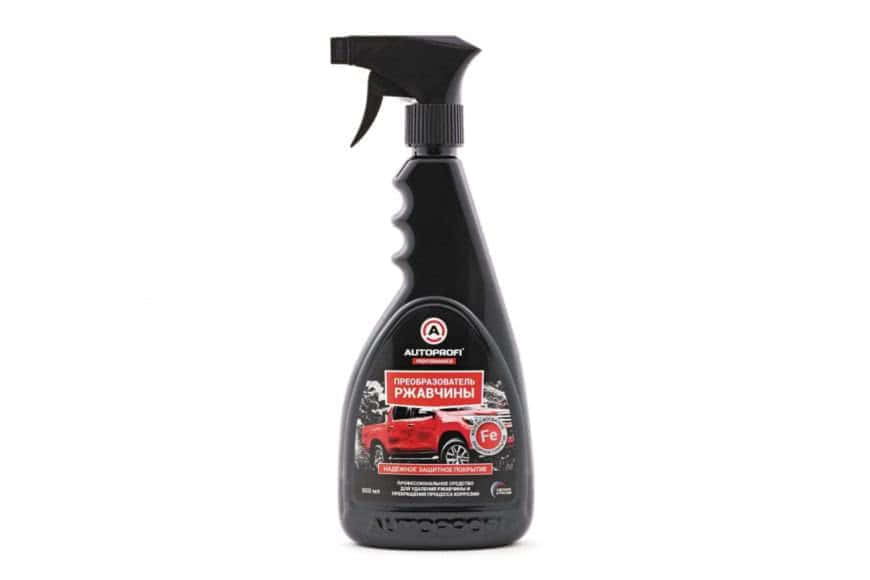 - Autoprofi. Российский бренд, продукция производится в Китае. Выпускается в форме спрея объемом 0,5 л. Аэрозолем удобно обрабатывать любой участок кузова. Активное действующее вещество – ортофосфорная кислота, в состав также входит марганец, ионы цинка. Нейтрализатор отличается высокой скоростью действия, преобразует ржавчину в грунт, а также создает на поверхности пленку, защищающую металл от влаги и пыли.