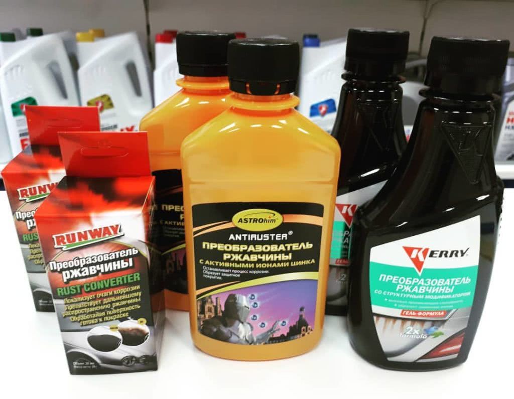 Преобразователями называют средства, которые преобразовывают частицы коррозии в прочную пленку. Такие составы выпускаются в форме растворов, эмульсий и суспензий.