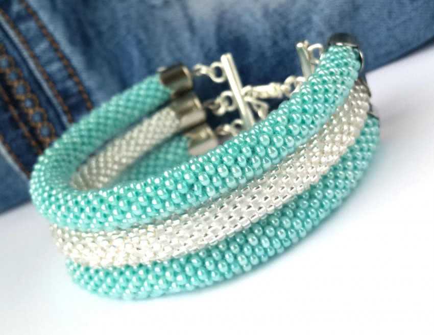 Главное при создании этого украшения выбрать качественный бисер. Для основы браслета выбирается – веревка.