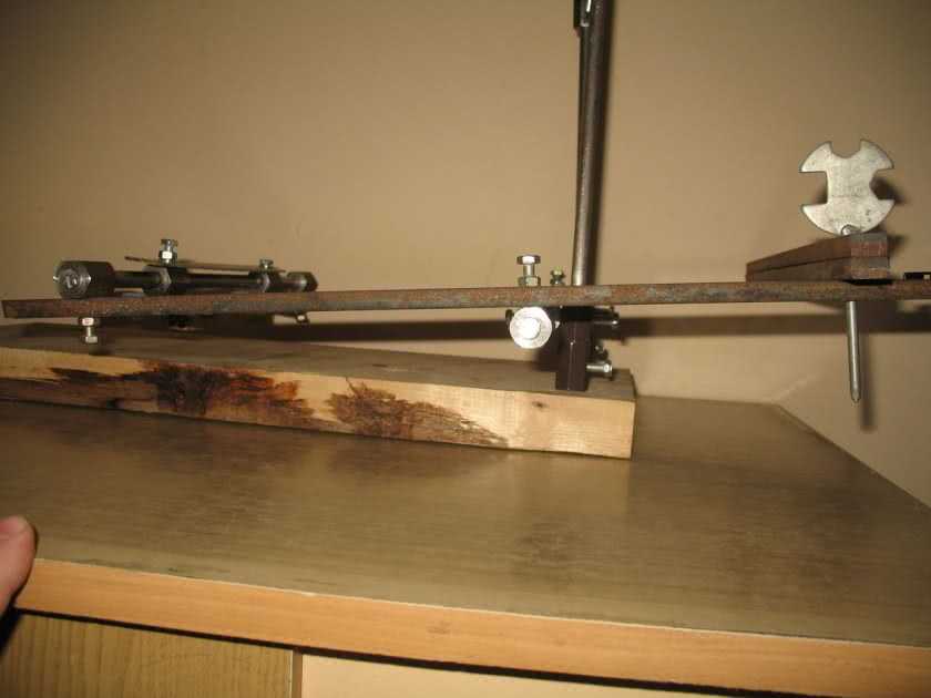 - Также вам понадобится небольшой брусок из текстолита или эбонита для создания подвижного соединения шпильки со станиной, которое можно будет регулировать по высоте (при необходимости его можно будет заменить бруском выполненным из твёрдых пород древесины например, это может быть дуб, бук или граб);