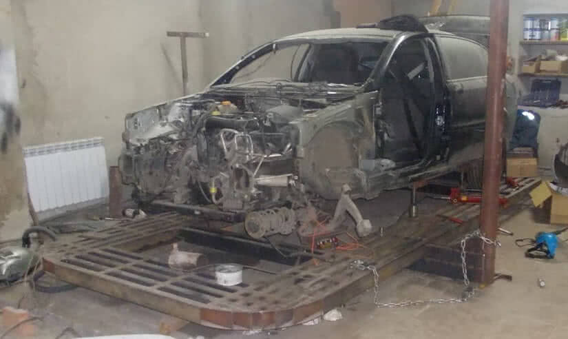 Прежде, чем приступить к коррекции и ремонту кузова, специалисты в первую очередь определяют степень повреждения и виды необходимых работ. После проведения предварительной диагностики автомобиль заезжает на специальную площадку, где фиксируется на раме.