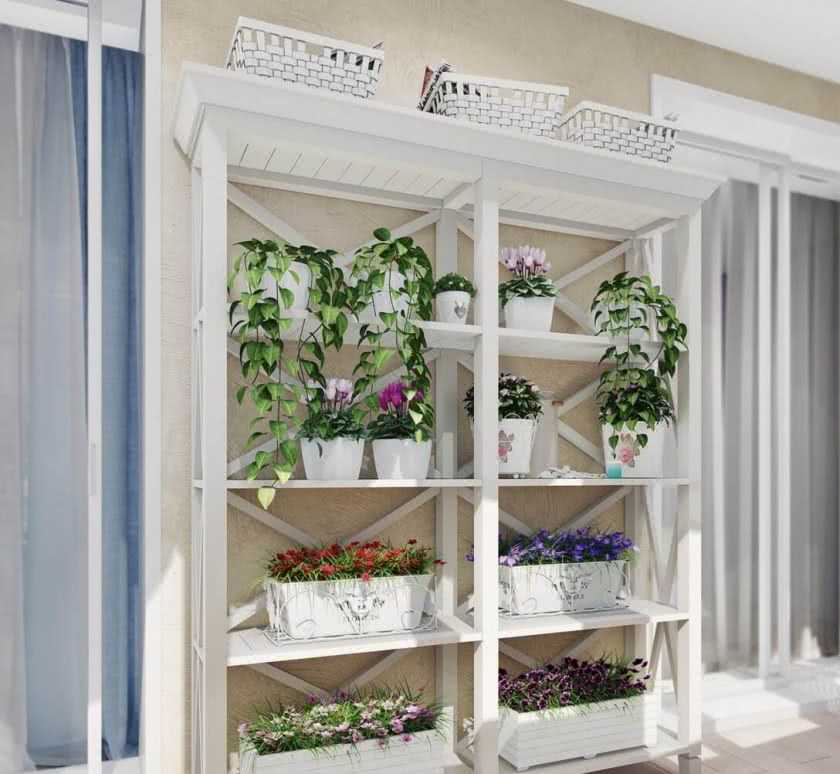 Есть многоступенчатые стеллажи, в виде горок, угловые, вписанные в ниши или растянутые на всю длину стены под окнами. В целом, форма этого изделия помогает вписать его в дизайн помещение органично и с максимальной эффективностью.