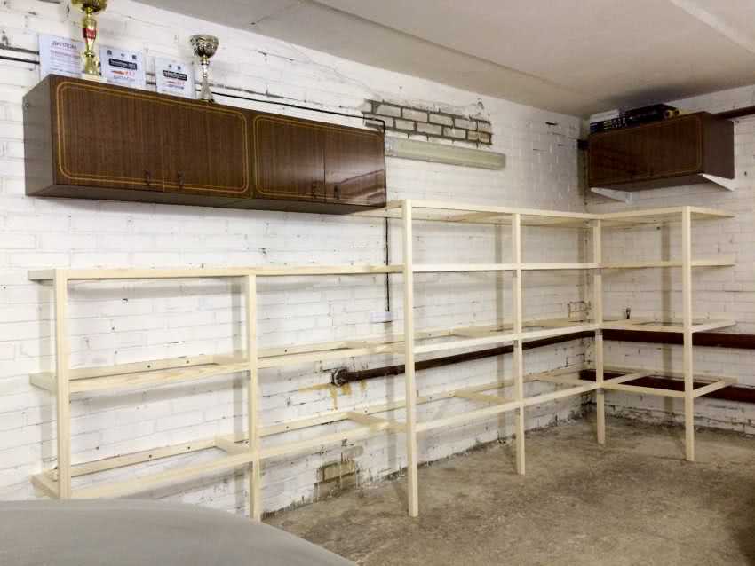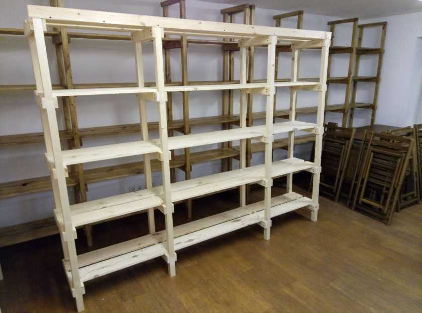 Если на стеллаже будут храниться консервные закрутки или рабочие инструменты, то дизайн изделия выбирают самый простой. Встречаются различные варианты стеллажей, сделанные своими руками.