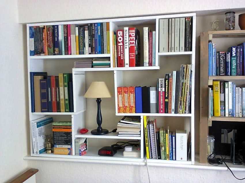 Для всех желающих к ознакомлению, предлагаем фото стеллажей своими руками, выполненных из различных материалов. Вам будет проще оценить и понять, что лучше дополнит дизайн вашей комнаты или квартиры в целом.