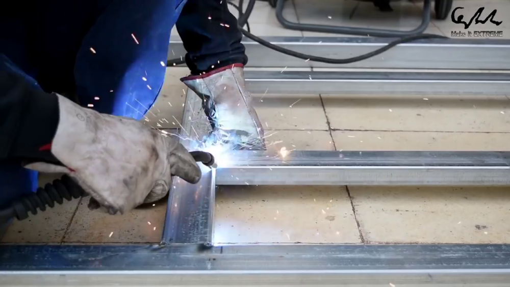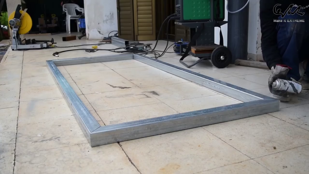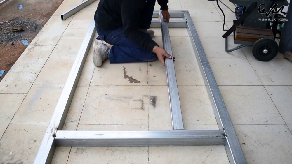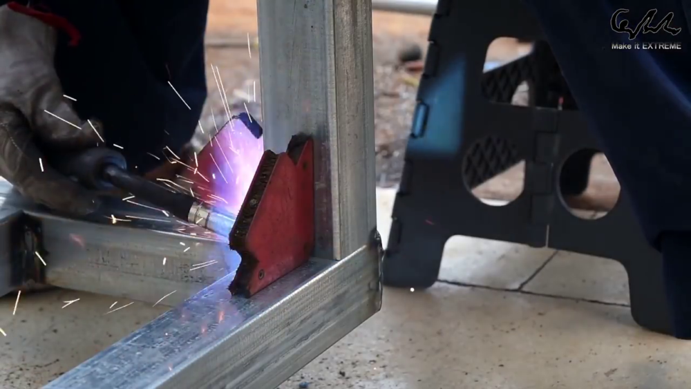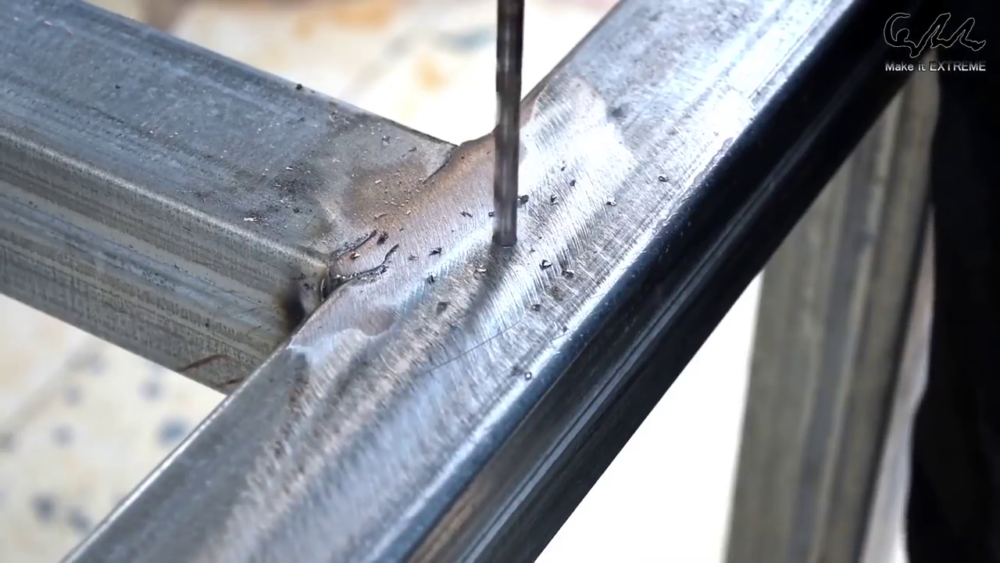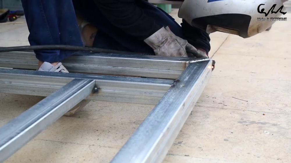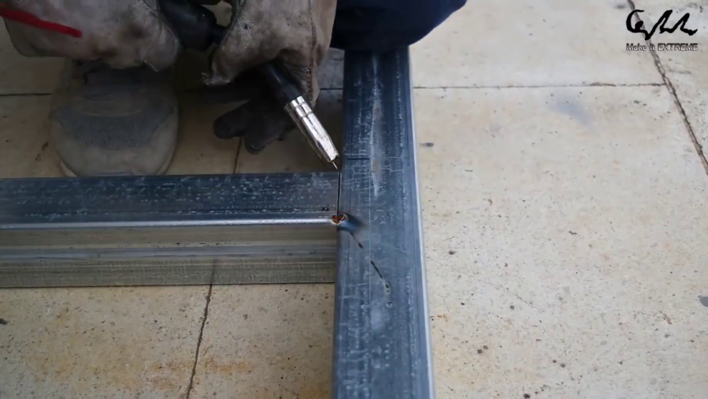 Собираем рамку по размерам и сначала прихватываем сваркой все стыки, а затем полностью провариваем всю конструкцию, так можно избежать увода профиля от требуемого размера.