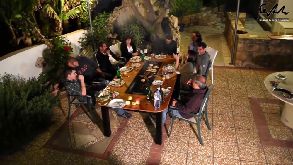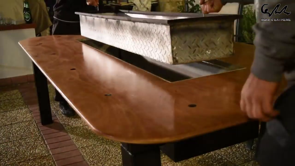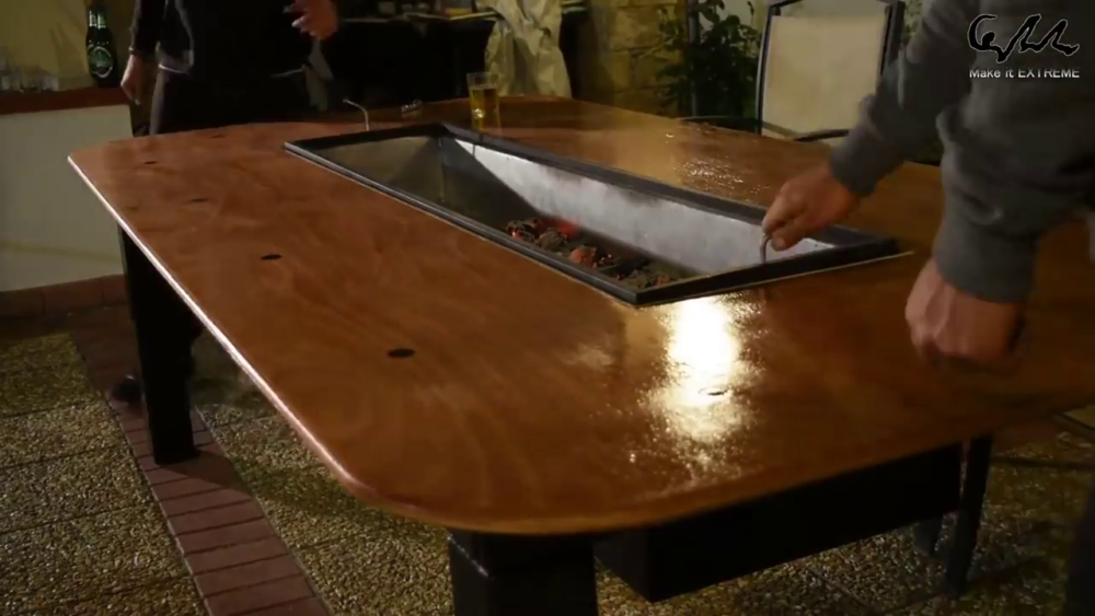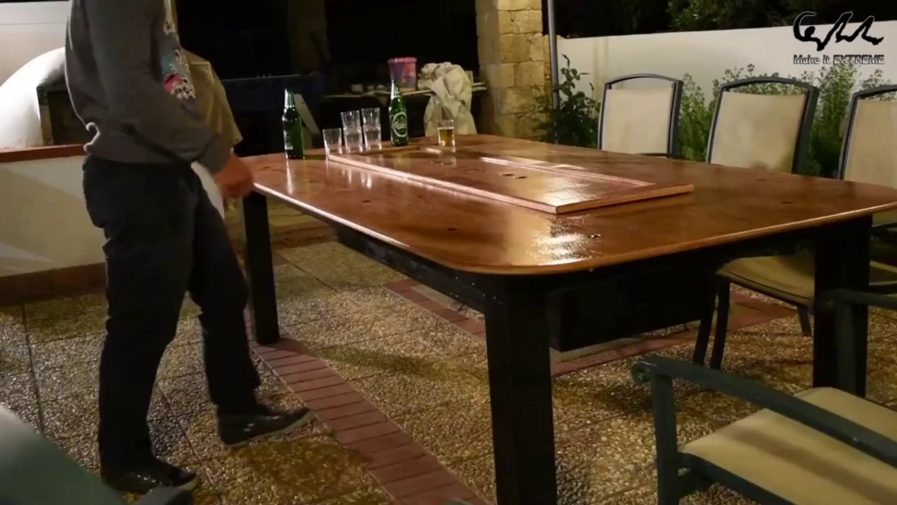 Стол со встроенным грилем готов! Друзья довольны! Хорошего время провождения!