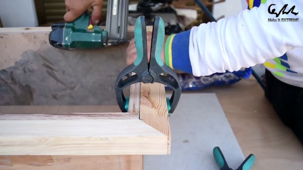 Шаг 1: Начните с изготовления основной рамы, используя клей и шурупы. Верхнюю полку установитt на необходимую высоту, убедившись, что она соответствует передней и задней рамкам.
