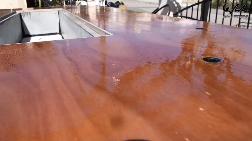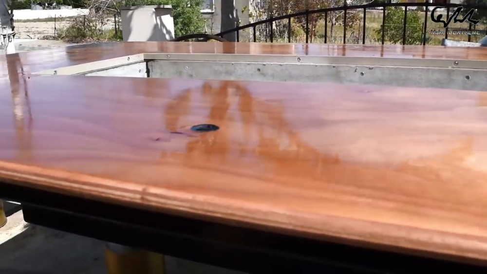 Покрываем столешницу и крышку ниши барбекю лаком и даем высохнуть.
