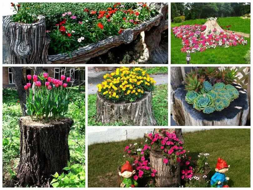 Как сделать клумбу или вазон из пенька, бревна своими руками
