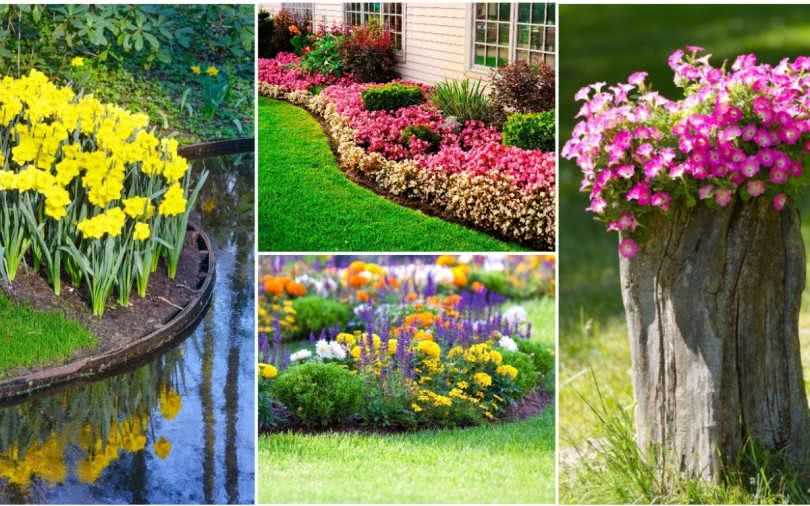 Совет! Цветники стараются не просто засадить растениями, а сделать дополнительную ограду для клумбы из пеньков.