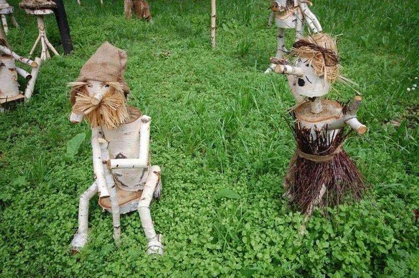 Получается полноценная композиция, тем более материала, старых стволов и чурок, оставшихся от распила дерева, хватает с избытком.