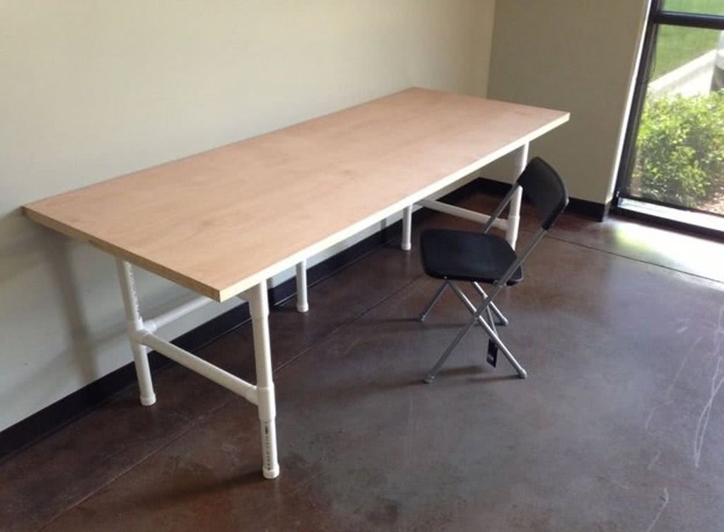 Стол из пластиковых труб ПВХ – вариант для тех, кто желает сэкономить на мебели для офиса, мастерской или же дома. Преимущества такого столика очевидны: низкая стоимость, простота монтажа своими руками, возможность покрасить его в любой цвет, любые габариты изделия.