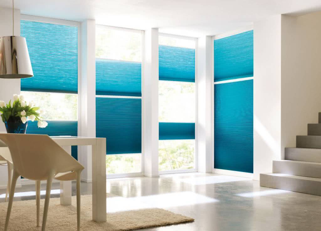 Жалюзи «плиссе» отлично защищают от солнца и тепла с улицы.