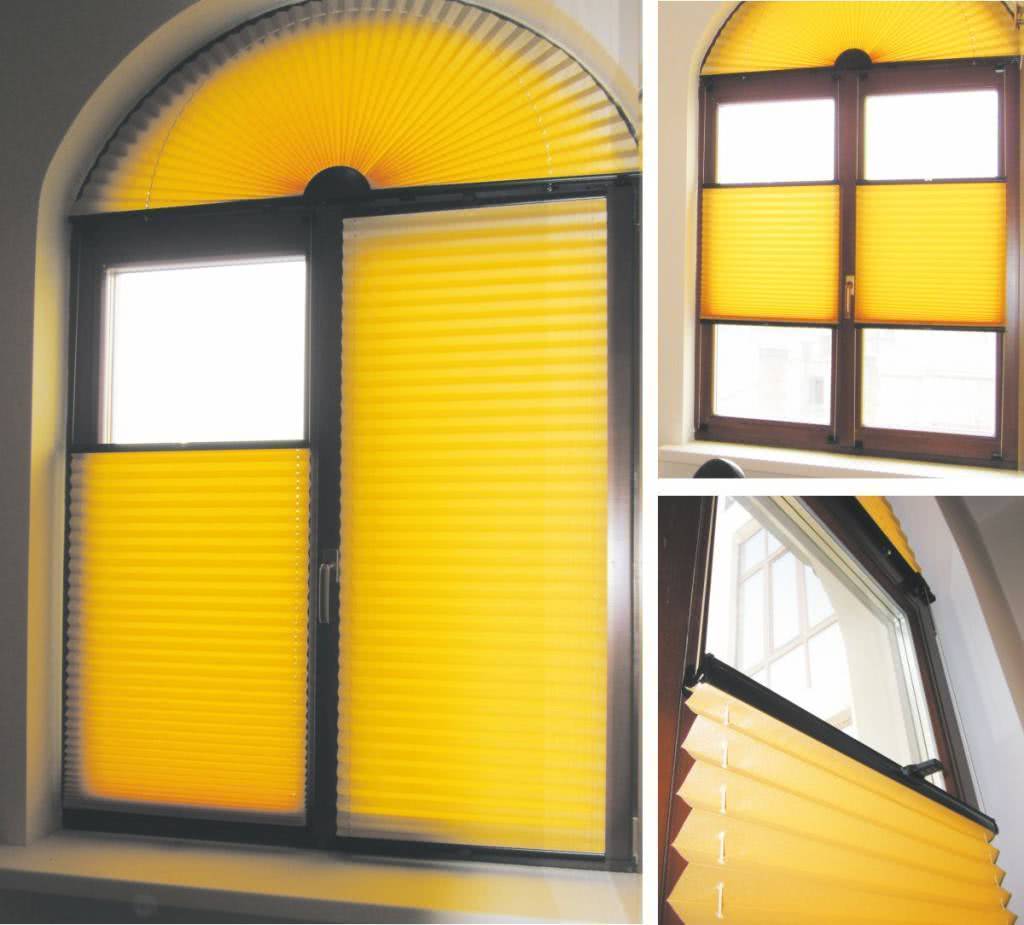 5. Плиссированные занавески, закрывающиеся и открывающиеся наподобие веера, выпускаются для арочных и круглых окон.