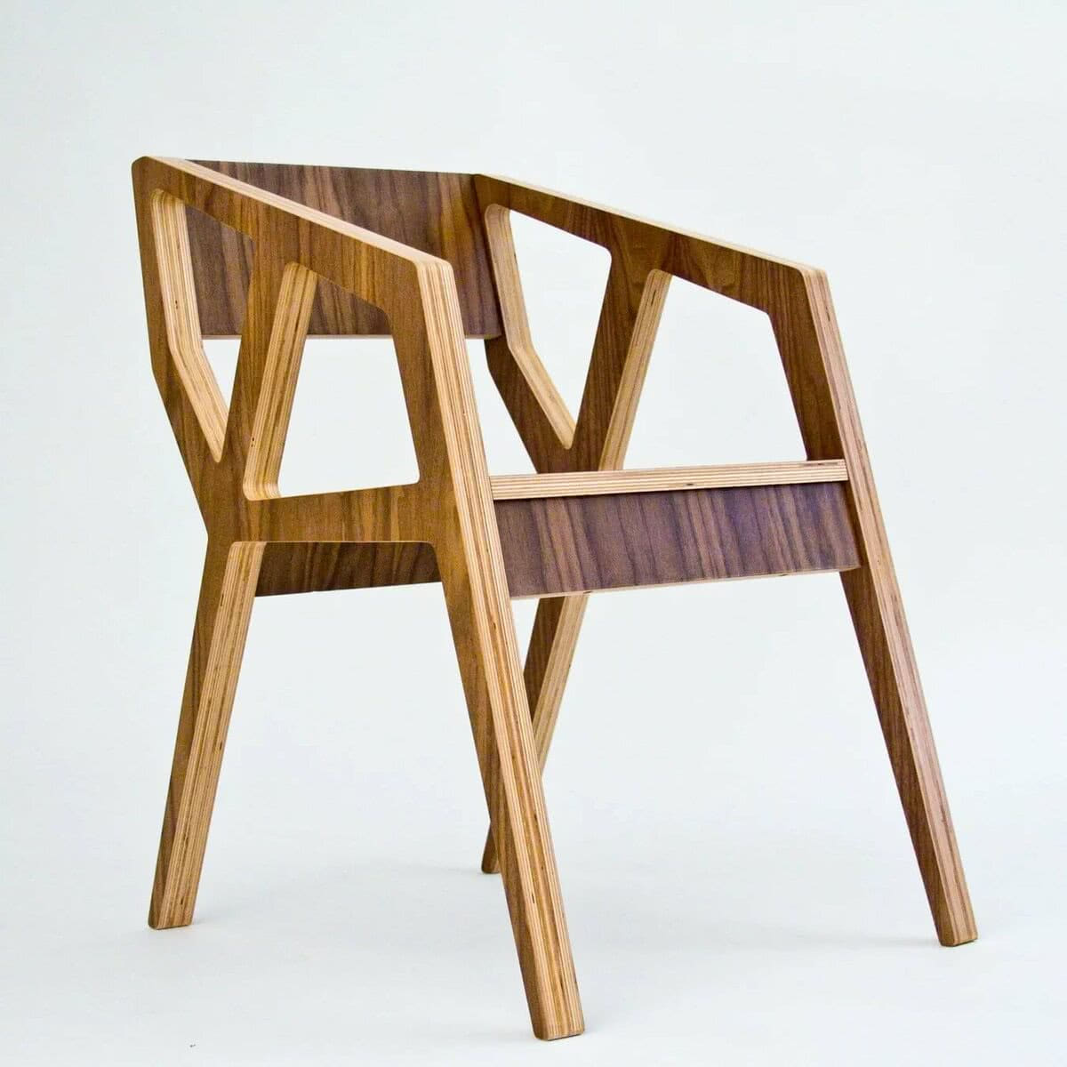 - Дизайнерские предметы мебели. Такие модели имеют обычно сложные формы, поэтому новичку без опыта лучше не браться за такие проекты. Примеры таких предметов – это стул-лежак, стул-кресло, барный стул из фанеры.