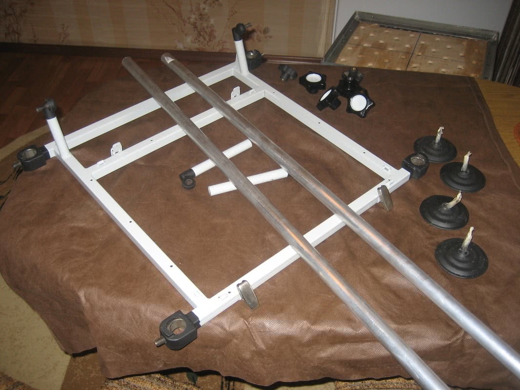 - После проверки конструкции на устойчивость она разбирается, материал натягивается на соответствующие отрезки труб.