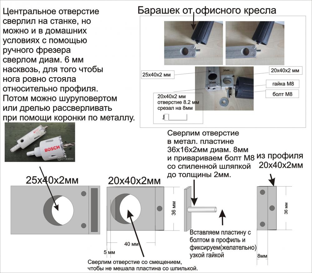 - В местах соединения ножек посередине длинных сторон просверливаются отверстия и соединяются крест-накрест с крепежом.
