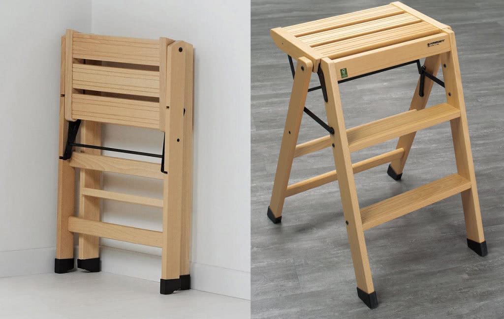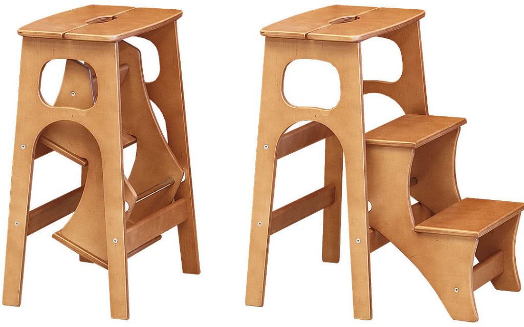 Невысокая стремянка в квартире и частном доме незаменимый предмет. Она нужна, чтобы сменить лампочку, стереть пыль на подвесной и высокой мебели, добраться до антресолей, понадобится во время ремонта, для работы в саду и множества бытовой работы. Когда такая стремянка складывается в табурет, она становится обычной частью интерьера кухни, коридора, веранды.