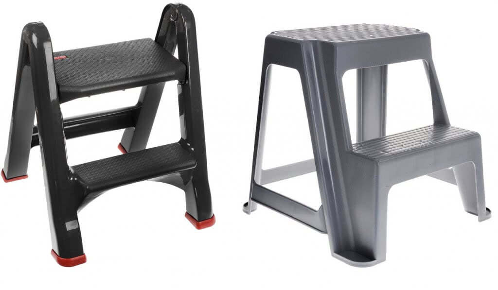 Преимущества пластиковых стремянок – ценовая доступность, устойчивость к влаге, но мебель сложно вписать в интерьер, а максимальная высота таких моделей – пару ступеней.