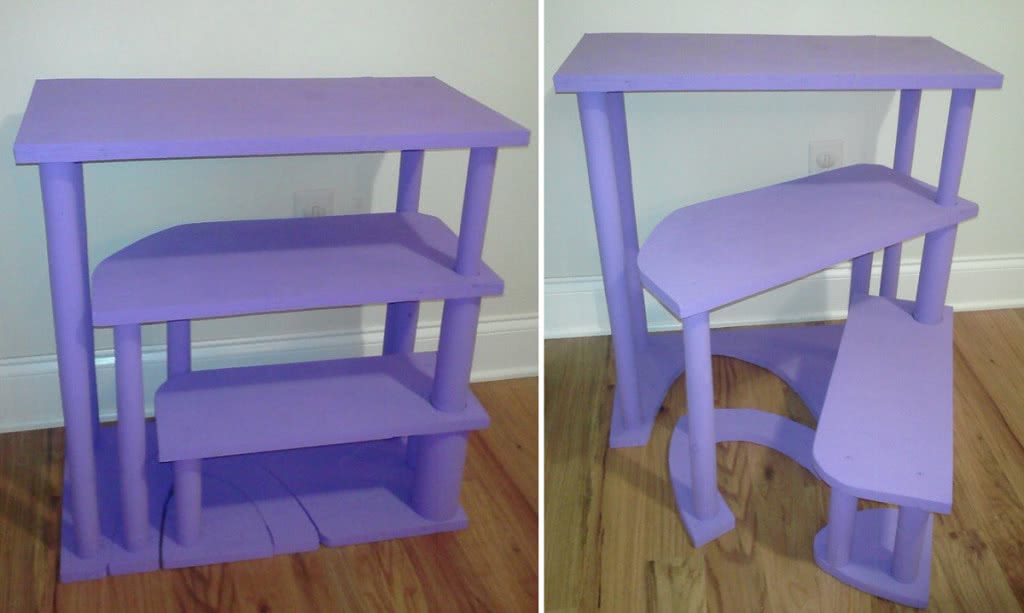 Табурет. Высокая конструкция с выдвижным модулем, ступени выезжают по направляющим полозьям.