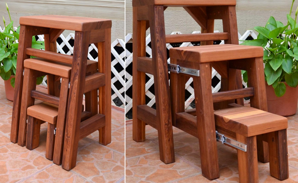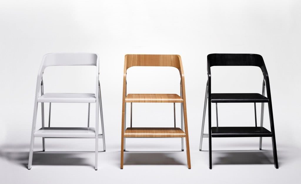 Стулья в форме стремянок подразделяются на простые складные, стационарные, телескопические и трансформируемые модели.