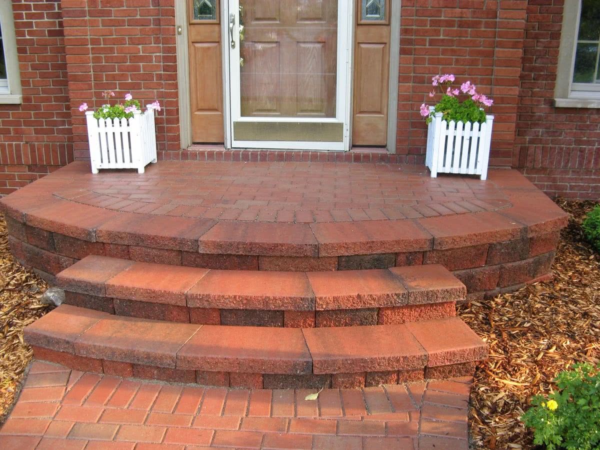 И еще один пример бетонной лестницы к крыльцу – со ступенями круглой формы. Чаще такой вариант применяется к невысоким крылечкам, где требуется подъем на две-три ступени. Наружная лестница для крыльца, фото которой вы видите внизу – полукруглая, вписанная в площадку прямоугольной формы.