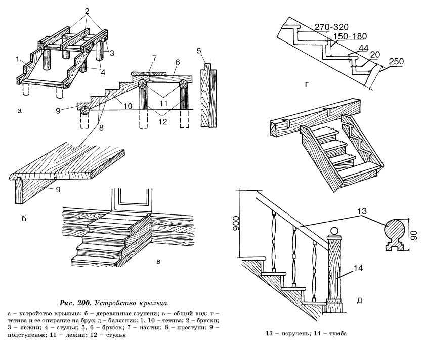 Как сделать лестницу для крыльца: косоуры вырубаются из бревна