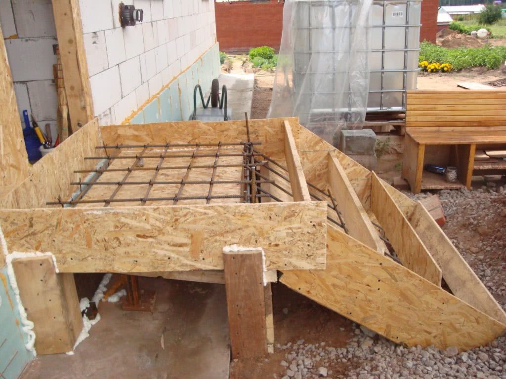 Её задача в удерживании бетона в определённой форме, защите от растекания при застывании. В продаже имеются специальные наборы для этих целей, но обычно в быту используют доски либо фанеру, из которых вырезают заготовки нужной величины под размер крыльца.