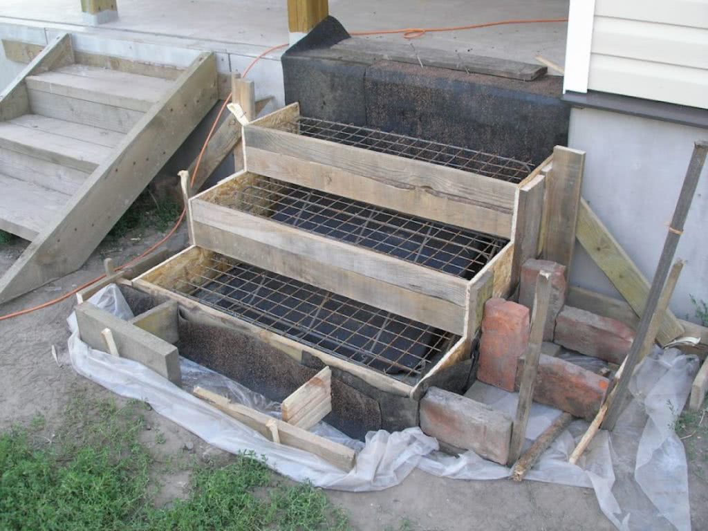 Для изготовления бетонного крыльца со ступенями своими руками, потребуется поочередно выполнить следующие действия: