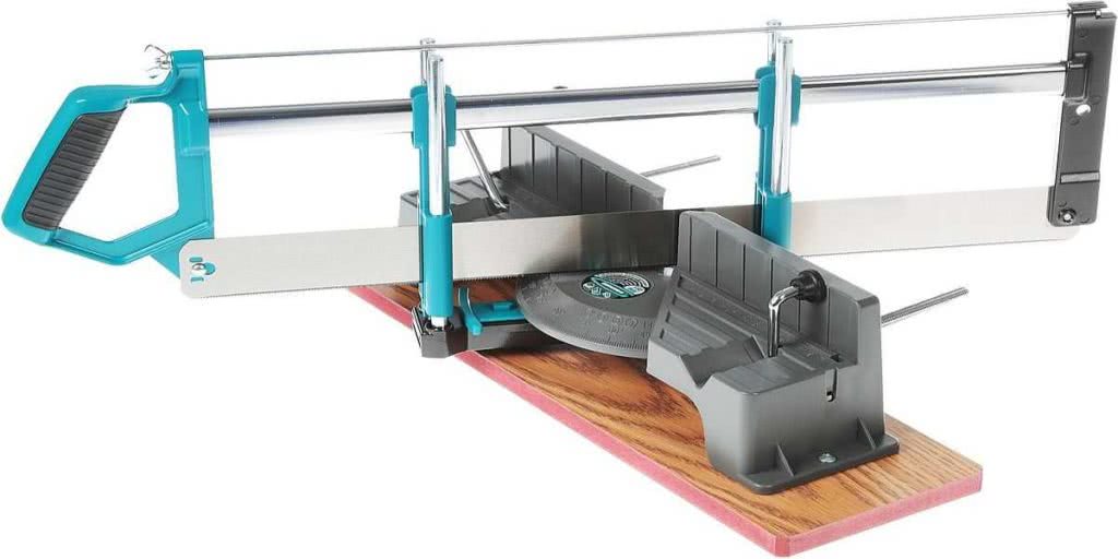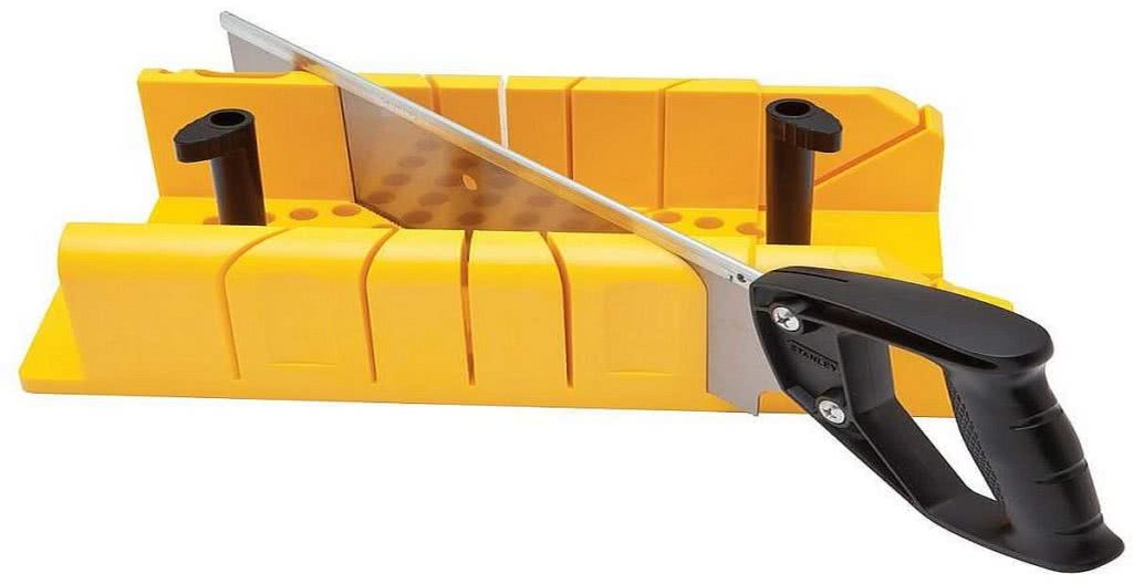 Плотницкое стусло — это устройство для резов под определенным наклоном. Его используют с ножовкой. В принципе, можно стусло сделать самостоятельно, собрав направляющую из досок и сделав в стенках пропилы. В продаже же есть различные модели стоимостью от 15$ до нескольких сотен долларов. Отличаются они возможностями, материалами, хотя все называются «стусло». Профессиональные модели сделаны на основе хорошей ножовки, имеют шкалу, которая позволяет выставлять пилу как надо. С таким инструментом не проблема выставить любой нужный угол реза, чтобы правильно отрезать плинтус для идеальной стыковки.