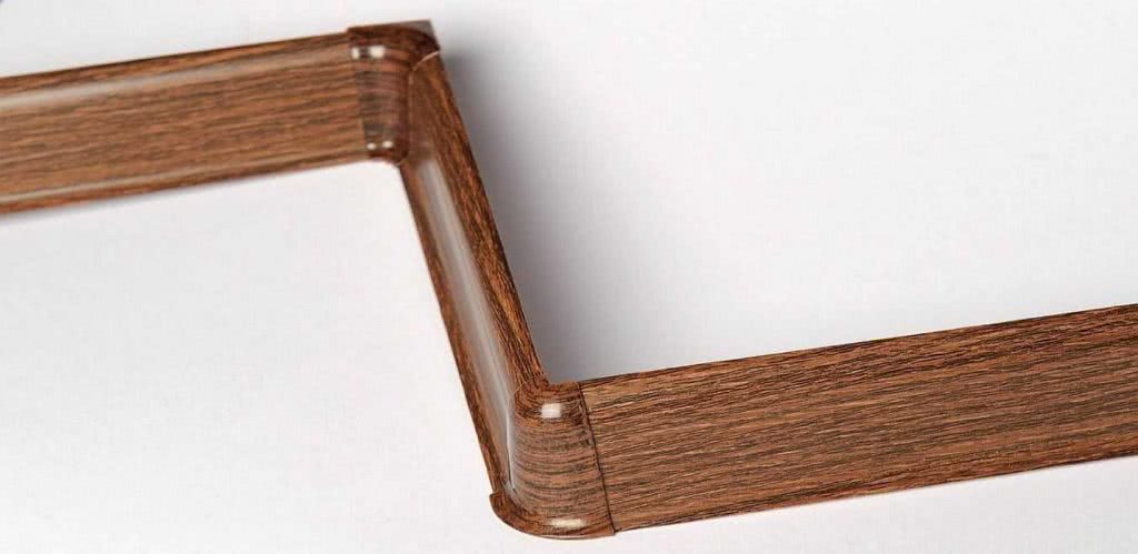 В пластиковых плинтусах можно оформлять углы и стыки при помощи специальной фурнитуры. Есть наружные и внутренние углы, заглушки и соединители. В принципе, они позволяют собрать нужную конфигурацию. Каждый производитель делает свою фурнитуру — под собственный профиль, цвета. Но принцип их использования одинаков.