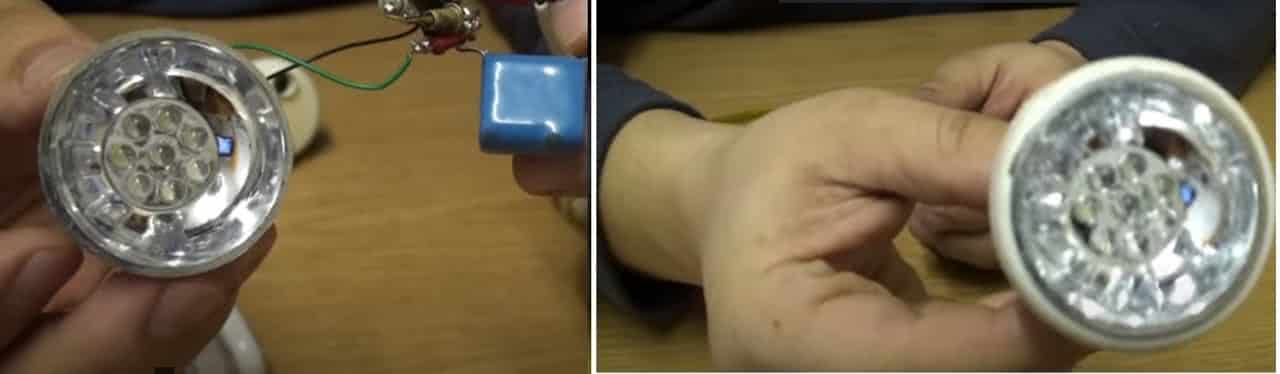 Припаяйте и зафиксируйте диск со светодиодами при помощи клея – самодельный светильник готов.