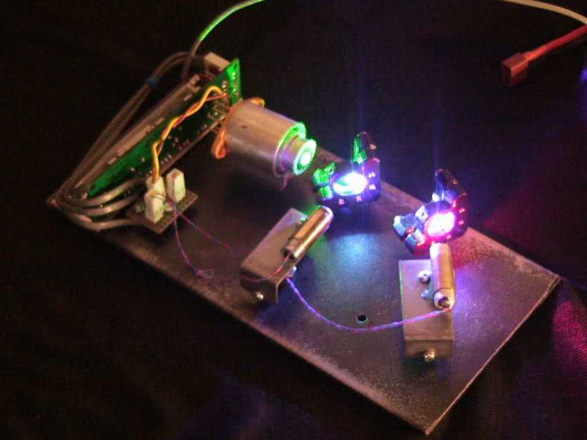 Все, мощный лазер готов – это самое главное. Он бьет на удивление далеко, можно создавать теперь мощнейшую цветомузыку, как на дискотеках и в клубах.