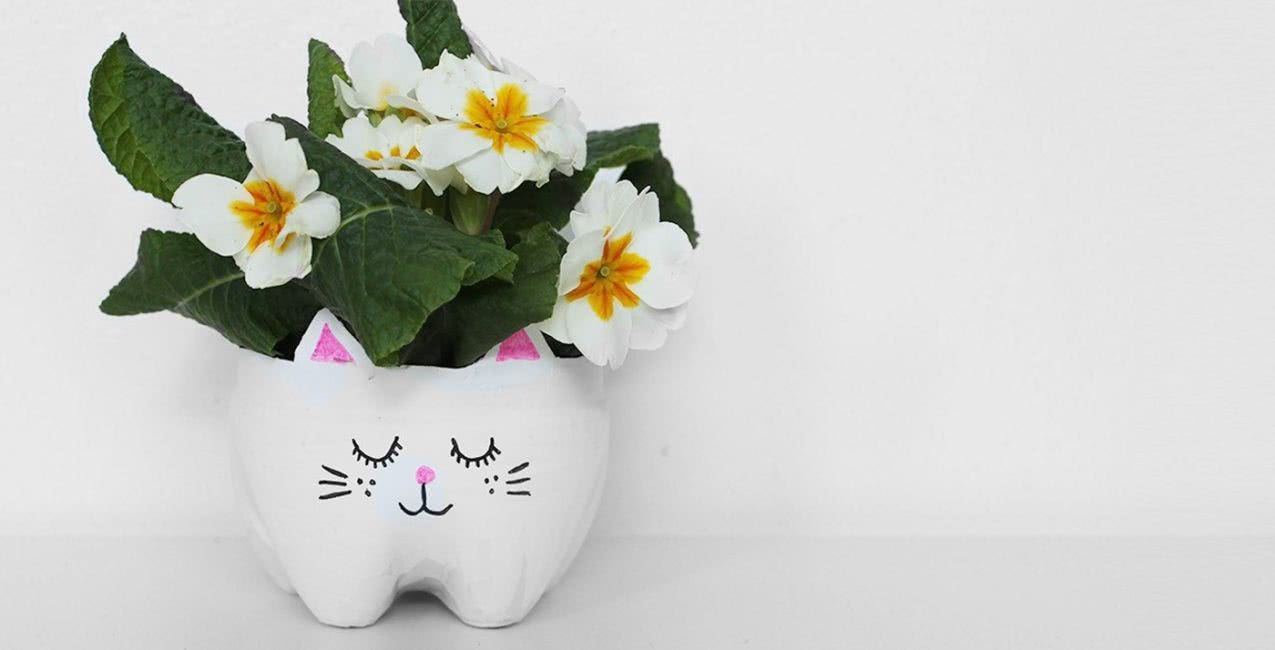 2На полученном горшке нарисуйте различные узоры или мордочки животных, например, кошки. Это будет смотреться очень мило и красиво, а главное оригинально.