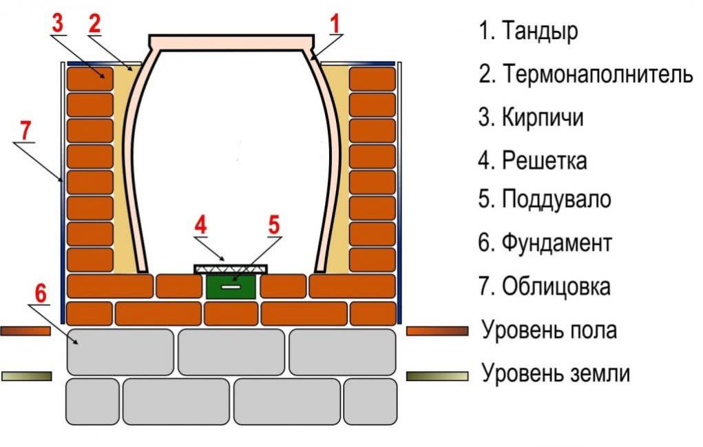 В разных странах такую печку называют по-разному: «тонур», «тандур», «тонир», но технологически эта конструкция везде одинакова и состоит из: